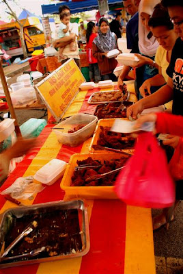 Bazaar Ramadhan di sini bolehlah dikategorikan diantara yang terkenal dan terbesar disekitar lembah klang. Pernah keluar beberapa kali di dalam rancangan tv dan sekali gus mempopularkan bazaar ini. Banyaklah juga gerai terkenal yang memerlukan ramai orang beratur untuk mendapat makanan. Saya sendiri sebenarnya malas nak beratur dan berebut. Cukuplah sekadar membeli di kedai yang tidak begitu ramai orang. Selebihnya hanya melihat pilihan yang ada.