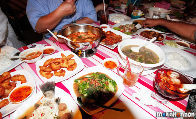 Dinner ni actually dibuat di kedai makan ayah saya yang terletak di Taman Melati. Oleh kerana jumlah orang yang join untuk makan malam ni pun melebih dari 25 orang, jadi lokasi kedai makan ni lebih sesuai jika dibuat di rumah. Kesemua menu malam tu telah diatur dan dirancang oleh parents saya sendiri yang diantara menunya adalah Tom Yam Udang Galah, Sup Tulang, Ikan Kukus, Ayam Goreng dan banyak lagi. Kesemua makanan ni dihidangkan dalam kuantiti yang besar dan banyak. Ha, makanlah semua orang sampai kenyang~!