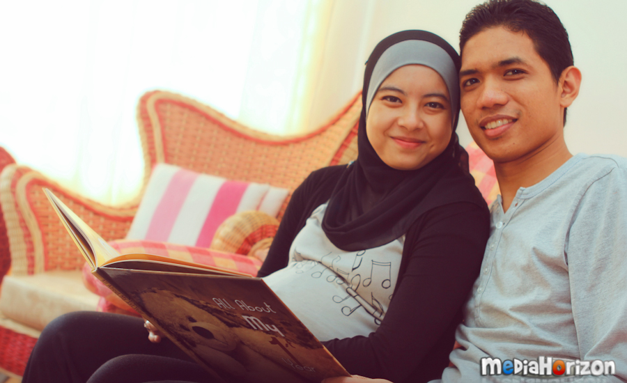 Saya hanya menggunakan 2 lokasi utama iaitu di ruang tamu dan di bilik baby. Oleh kerana pilihan dan ruang lokasinya agak terhad, jadi peranan pasangan menggunakan ekspressi masing-masing amat penting. Saya suka-suka je suruh dorang pura-pura gelak ataupun seperti sedang berborak untuk menampakkan mood neutral. Dorang memang akan dengar arahan saya.. Hehe…