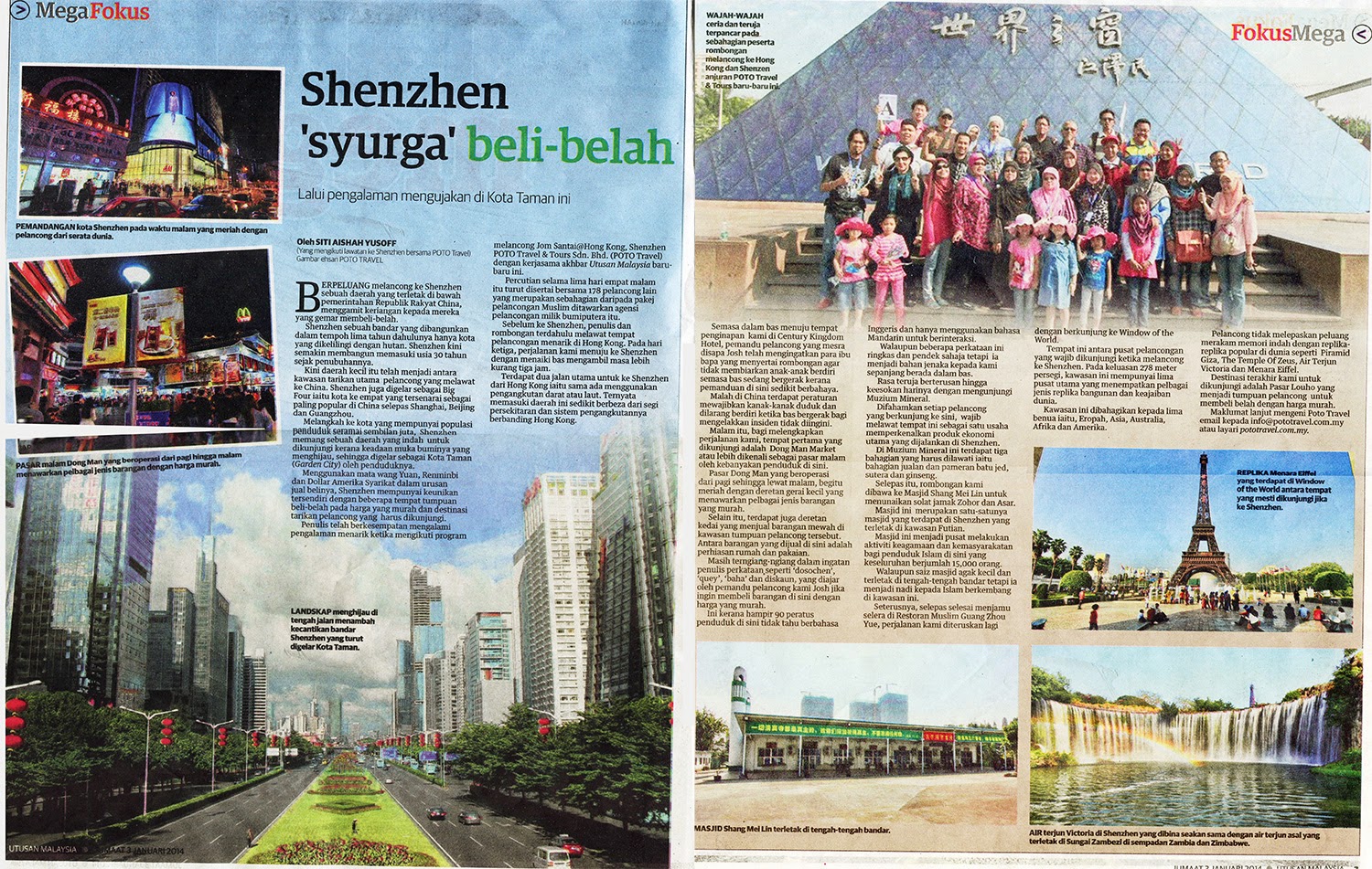 2 artikel ini dikeluarkan pada tarikh yang berbeza yang mana setiap satunya memfokuskan kepada Hong Kong dan Shenzen. Terima kasih kepada ahli kumpulan A iaitu Aishah yang bertugas sebagai wartawan Utusan. Terima kasih dan tahniah juga kepada jurugambar Poto Travel kerana telah ambil gambar yang cantik.