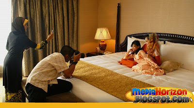 Tiah yang agak kaku pada awalnya semakin lama nampaknya semakin selesa dengan CT. CT yang pandai melayan dan mengambil hati Tiah akhirnya menampakkan kemesraan diantara dua bintang baru dan lama ini. Lebih dari 3 set dan 2 persalinan dikenakan oleh mereka berdua untuk melengkapkan sesi hampir 2 jam photoshoot kali ini. Walaupun sebenarnya photoshoot kali ini hanya disertai oleh seorang photographer dari kosmo tetapi suasananya bagaikan banyak photographer dari media-media lain. Manakan tidak, saya dan Afiq yang dengan DSLR masing-masing berlari ke kiri dan kanan mencari angle yang cantik mengalahkan photographer utama kosmo.