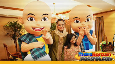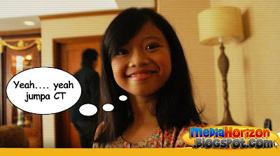 Tiah sendiri sebenarnya merupakan peminat no 1 Dato CT yang sering menyebut nama CT sekiranya ditanya oleh media siapakah artis kegemaran Tiah. Bagaikan mimpi jadi kenyataan Tiah disebaliknya terkaku dan terdiam sebaik sahaja ternampak kelibat CT di dalam Royal Suite Hotel Nikko yang dijadikan lokasi pengambaran kali ini. Sambil mencuit Mamanya inginkan kepastian, dia masih dalam keadaan separuh percaya. Sebenarnya bukan Tiah saja yang hampir tidak percaya, malahan saya bersama beberapa team Upin & Ipin juga tergamam melihat CT yang berada di depan mata. Berada di dalam photoshoot tertutup memudahkan saya untuk bergambar serta berborak santai bersama CT. CT yang pertama kali berjumpa dengan maskot Upin & Ipin pula nampaknya sangat teruja dan gembira. CT yang begitu mesra ini sangat sopan dan merendah diri. Malahan CT lah yang pertama sekali yang mengeluarkan hasrat untuk bergambar bersama Upin & Ipin. Saya bersama Afiq yang malu-malu awalnya akhirnya mengeluarkan DLSR masing-masing dan mengambil gambar dari pelbagai sudut yang termampu.