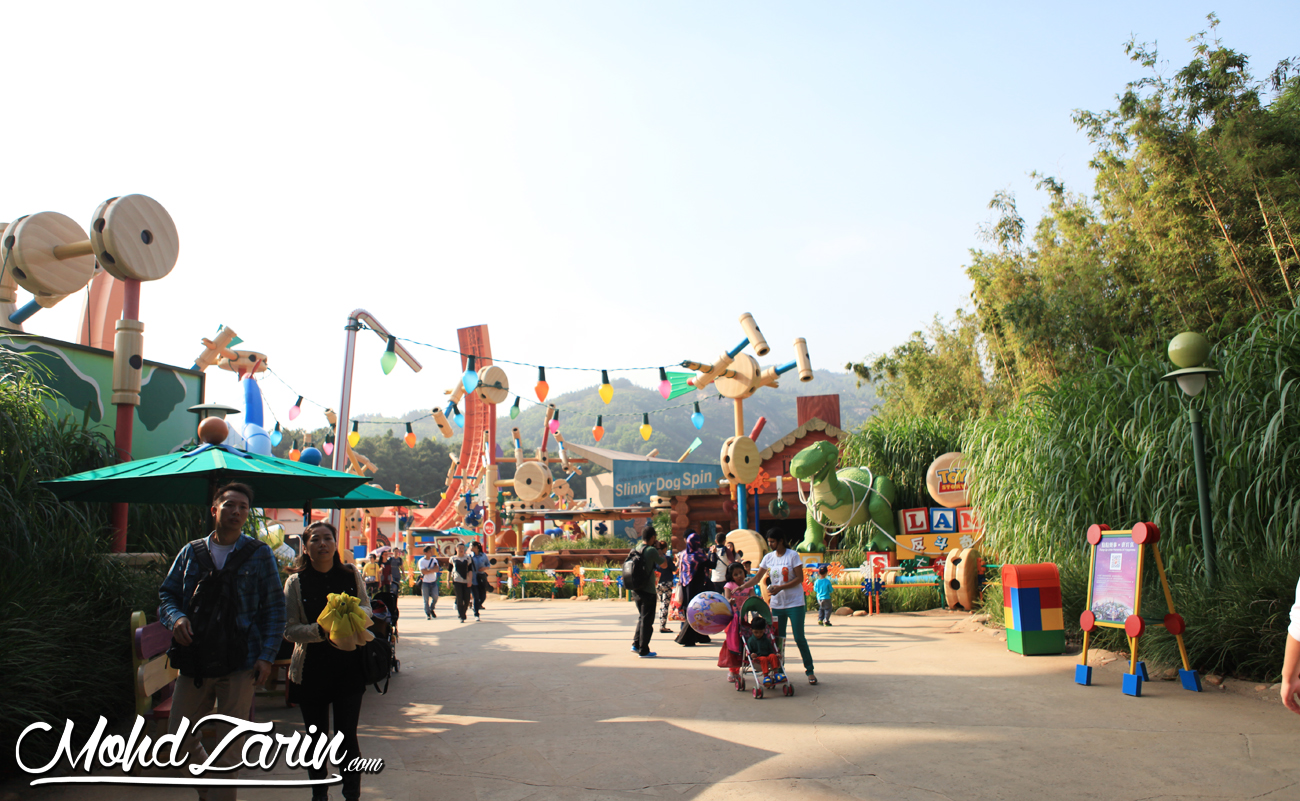 Salah satu keunikan Disneyland Hong Kong adalah dengan adanya Toy Story Land. Mungkin saya silap, tetapi saya rasa bukan semua Disneyland ada Toy Story Land. Dah lama saya google mengenai Toy Story Land dan memang mengidamkan untuk datang ke sini. Namun begitu, pada pendapat saya hampir semua ride dan permainan di kawasan ini mungkin lebih sesuai untuk kanak-kanak. Saya tak jumpa satu pun ride yang saya teringin untuk cuba. Iye, jadi kalau bawak kanak-kanak mungkin akan tersangkut lebih lama di kawasan ni.