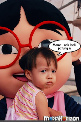 Dengan berbekalkan 3 set maskot ni iaitu Upin, Ipin, Mei Mei dan bersama 3 orang assistant (sorang setiap satu) serta sorang cameraman sekurang-kurangnya 7 orang yang terlibat bila membuat sesekali penampilan. Orang yang menyerbu ke arah maskot pula boleh tahan ramainya. Saya boleh labelkan antara yang crowd yang teramai disepanjang Suarasa ialah di Suarasa Kedah. Memang macam nilah setiap kali kami buat event di belah-belah utara. Tapi walaupun ramai, crowdnya masih terkawal. Selain membuat penampilan maskot di booth, sudah tentulah bawak jalan-jalan di sekitar tapak Suarasa. Sebenarnya ketika berjalan-jalan dengan maskot ni ialah moment yang paling seronok. Seronokpun kena jaga keselamatan maskot supaya takde orang pukul atau tarik. Selain tu kena juga guide orang maskot ni untuk mana. Yelah, orang kat dalam tu dah tak berapa nampakkan.