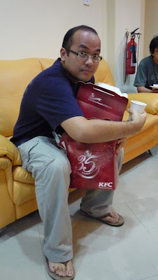 Hari tu semuanya pakat nak makan KFC sama2. So Team A pergilah ke Tesco beli KFC manakala Team B kat opis prepare tempat makan.