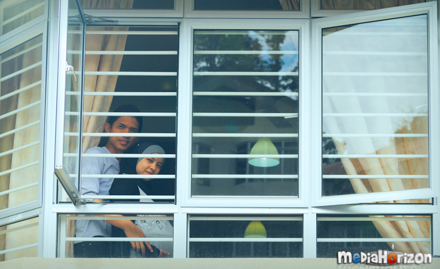 Saya hanya menggunakan 2 lokasi utama iaitu di ruang tamu dan di bilik baby. Oleh kerana pilihan dan ruang lokasinya agak terhad, jadi peranan pasangan menggunakan ekspressi masing-masing amat penting. Saya suka-suka je suruh dorang pura-pura gelak ataupun seperti sedang berborak untuk menampakkan mood neutral. Dorang memang akan dengar arahan saya.. Hehe…