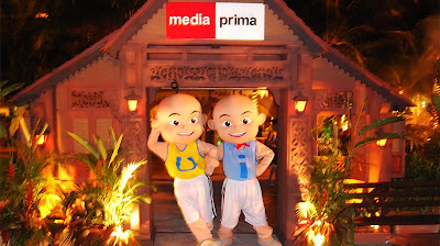 Memang tak rugilah datang kerana saya berpeluang berjumpa dengan beberapa orang media/press yang saya kenal dan tidak putus2 menyokong Les Copaque. Antaranya wartawan dari NSTP dan Utusan. Kebanyakkan dari mereka amat terkejut dengan kemunculan maskot Upin & Ipin ini kerana kami sendiri jarang menurunkan maskot Upin & Ipin untuk event malam hari. Media Party ni selain untuk menghargai media ianya juga memberi peluang kepada para media untuk memenangi hadiah2 lumayan dengan hanya melalui cabutan bertuah yang diadakan pada malam tersebut juga. Antara hadiah yang ditawarkan ialah handphone, peralatan elektrik dan grand pricenya ialah sebuah kereta Fiat. ( huhuh)p/s: Nampaknya Suarasa dah berubah lokasi… nanti kita tunggu updates terkini