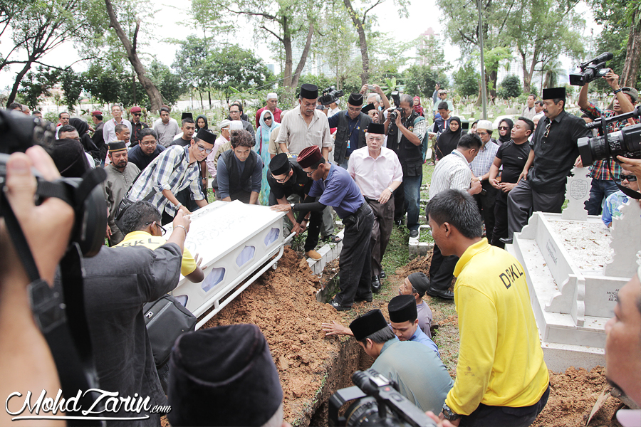 Jenazah telah disempurnakan dan disembahyangkan di Masjid Amru Ibni Al-As Bandar Baru Sentul dan dikebumikan di Tanah Perkuburan Islam Jalan Ampang selepas Zuhur. Jenazah juga dikebumikan bersebelahan dengan kubur isterinya iaitu seniwati Roseyatimah yang telah meninggal dunia pada tahun 1987. Ramai rakan media dan rakan-rakan Allahyarham hadir di majlis pengebumian ini untuk memberikan penghormatan yang terakhir.