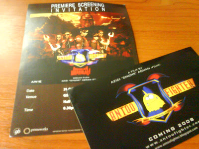 Pada 31 Okt 08, saya berpeluang utk join premiere screening filem Antoo Fighter yang bakal ditayangkan di pawagam pada hujung tahun. Premiere ni diadakan di GSC, Midvalley pada jam 8:30mlm. Pada malam tersebut ramailah artis2 yang turut ada lebih2 lagi pelakon filem ni sendiri seperti Awie dan Radhi.