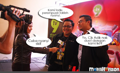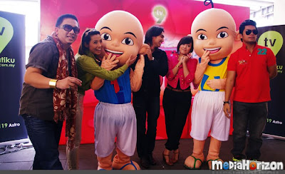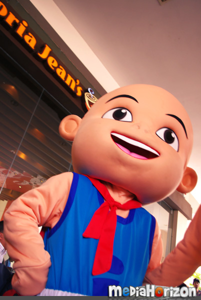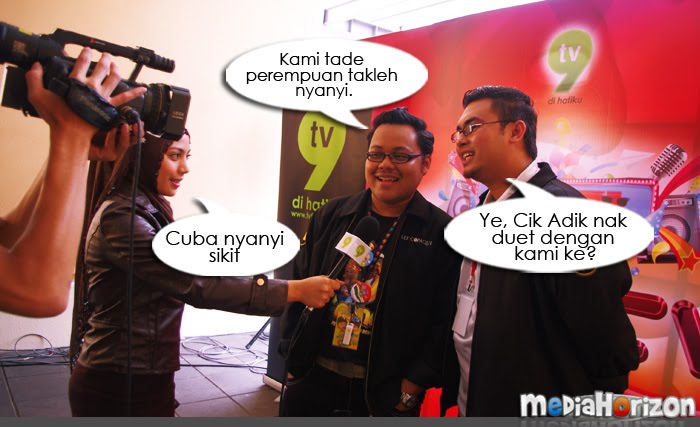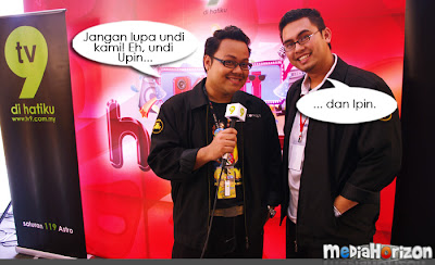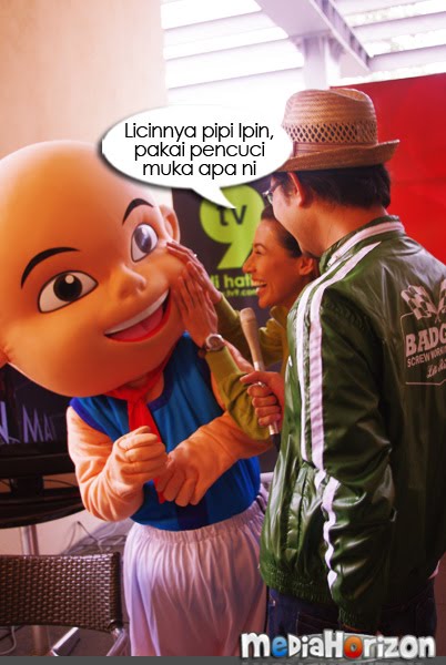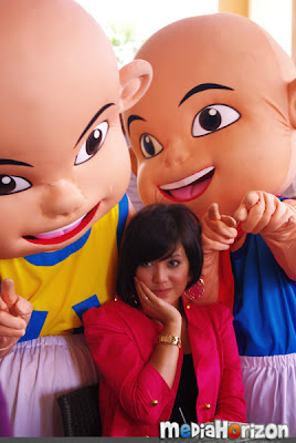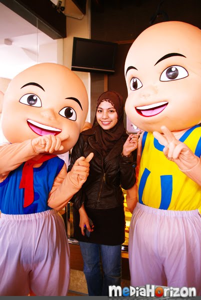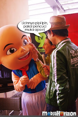 Bermula sekitar pukul 3 petang, PCnya sangat santai dan bersenang lenang. Aktiviti utamanya ialah bergambar bersama artis untuk pihak media meletakkannya di dalam media masing-masing nanti. Saya dan Afiq pula dipaksa untuk mempromokan Upin & Ipin supaya peminat boleh mengundi. Yelah, kalau nak suruh maskot, maskot mana boleh bercakap. Makruh. Mula-mula tu memang seganlah nak record sebab orang selalu kata saya tak muat masuk TV. Tapi, bila dah dapat mic tu, siap mic2 dia sekali saya pinjam untuk recording guna camera lain pula. Erm, tak perasan bila keluar TV.. tapi sepatutnya dah la.