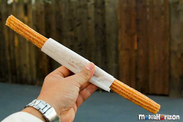 Pada hari kedua ni kitaorang tak berapa rushing sangat dan berjalan-jalan dalam themepark mengikut keperluan kajian. Tapi rupanya kitaorang memang tak makan lunch langsung sebab takde pilihan dan kesuntukan masa. Pilihan yang ada hanyalah minuman coffee ataupun hot chocolate yang dijual dikiosk-kiosk. Kalau nak makanpun saya hanya mampu beli churros yang tak berapa nak sedap dan tak kenyang. Churros ni rasanya macam roti yang ditabur gula tapi banyak rasa kayu manis. Harga churros sebatang ni dalam lingkungan USD4 ataupun duit kita dalam RM12.