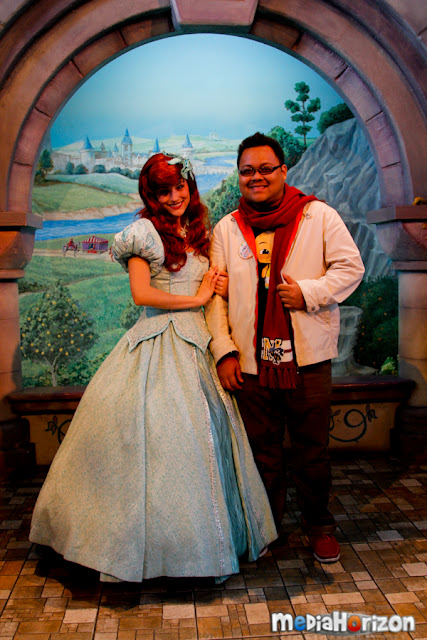 Kalau budak-budak perempuan yang minat watak-watak Disney pasti suka watak-watak Princessnya. Kat sini princess-princess ni akan buat persembahan ala-ala musikal. Budak-budak perempuan yang nak jadi seperti mana-mana princess ni pun boleh beli pakaian yang ada dijual kat salah satu butik ni dan juga boleh pergi ke bilik servis makeup untuk set rambut dan sebagainya. Untuk makeup ni kalau tak salah saya dikenakan bayaran sekitar USD30 berserta gambar kalau ambik pakej. Memang bisnes betul la sebab ramai budak-budak perempuan yang akan beli baju dan bayar untuk bermakeup ni lebih-lebih lagi bila dapat bergambar dengan princess idaman dorang. Saya pun nak juga bergambar dengan princess idaman saya. Jadi saya, Fikri dan Ainur turut beratur bersama budak-budak perempuan semata-mata untuk bergambar dengan dorang ni. Semasa setiap sesi bergambar, akan ada 3 orang princess bersiap sedia untuk bergambar. Princess-princess ni dipilih secara random dan kitapun tak tahu dengan siapa kita bergambar sehinggalah sampai kat tempat bergambar. Saya nak cari Rapunzel sebenarnya tapi tak jumpa kat sini. 3 Princess yang saya bergambar bersama adalah Ariel (Little Mermaid), Jasmine (Aladin) dan Tiana (Princess & The Frog). Kalau nak bergambar dengan princess yang lebih famous macam Cindrella atau Snow White biasanya ikut nasib. Macam watak Snow White hanya akan muncul ketika persembahan musikal dan di parade serta kadang kala sahaja ketika sesi bergambar.
