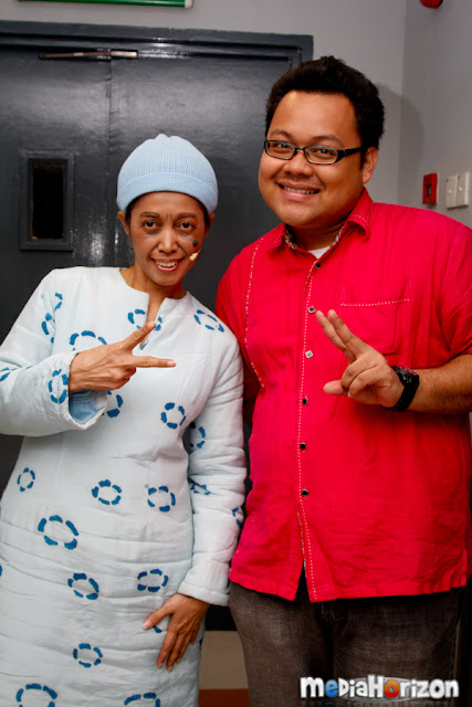 Ok, kita lompat ke belakang pentas sekejap. Mari kita sambung tengok wajah-wajah orang penting dibelakang pentas. Actually, saya hanya dapat ambik gambar bersama dorang ni sehari sebelum persembahan terakhir. Yelah, hari lain memang tak sempat. Kat belakang pentas ni dah macam bilik perang. Ada baju kat situ, ada kasut kat sini. Tapi apa-apapun kesemua warga kerja teater ni bekerja dengan semangat kat belakang pentas hinggalah saat-saat persembahan terakhir.