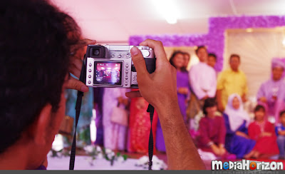 Majlisnya begitu santai dan meriah. Saya yang secara automaticnya melantik diri saya sebagai juru gambar semasa itu, memang tak sempat duduk diam. Juru gambar profesional wedding ni amik dari angle sini, saya pun amik ikut angle sini… melawan tu. Saya pun memang minat ambik gambar wedding dan sekadar suka-suka mencuba angle-angle yang berbeza. Lebih kurang sejam lebih rasanya kitaorang di sini, sedikit sebanyak dapatlah berkongsi kemeriahan majlis persandingan Hakim ni. Hakim ni actually, semasa wedding ni dia masih bekerja sebagai seorang web designer. Jadi saya sendiri banyak bekerjasama dengan dia.