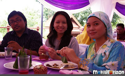 Pada pendapat saya warna purple ni memang cantik sangat dan sesuai dengan pasangan ni yang berkulit cerah. Selain memang saya juga suka warna purple, warna purple ni macam menaikkan warna majlis dan menyejukkan suasana walaupun masa tu tengah panas. Kalau saya tau theme colornya puprle mesti saya juga akan pakai purple. Hehe. Boleh tahan ramai juga staff LCP yang memeriahkan majlis ni. Selain sebab majlisnya dekat, masing2 nak juga lihat pasangan Hakim dari dekat. Yela, nak kenal-kenal.